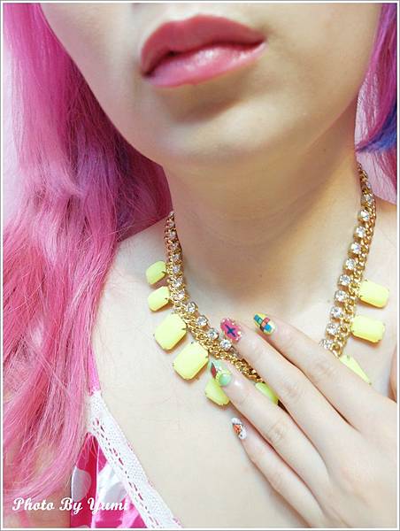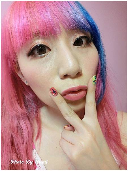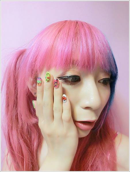 換了髮色後更適合螢光指甲 整個人好繽紛 太花俏拉!!