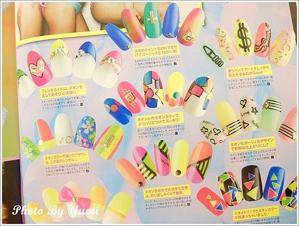 翻開日本的美甲雜誌也很多螢光色指甲 每個都好美 實在很難選款式