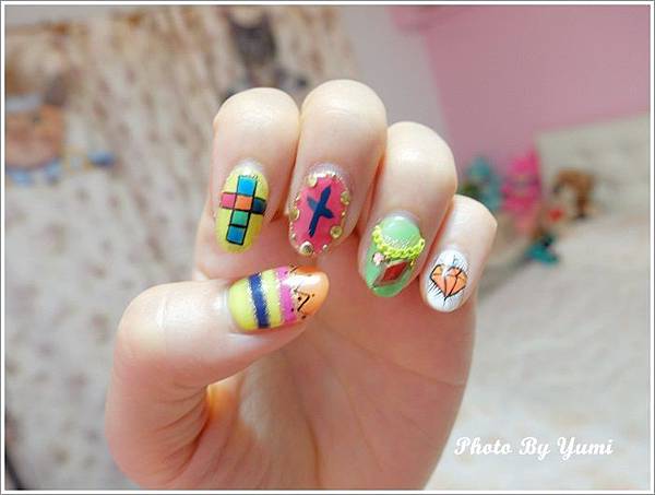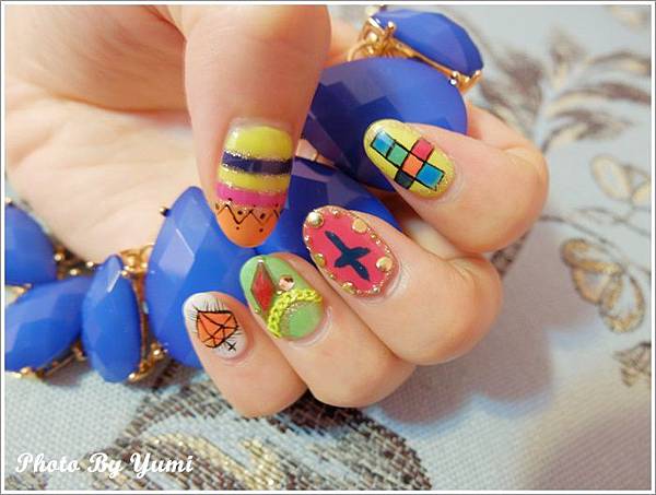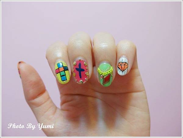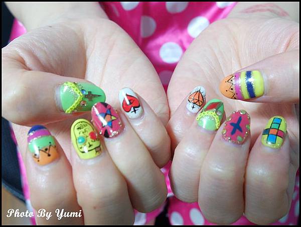 登登 是不是很繽紛的指甲 好美呀!!!! 完全就是我的菜 好適合我噢~
