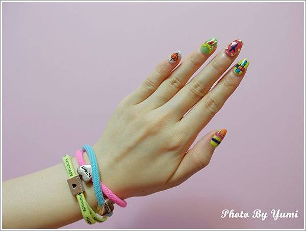 這次的指甲跟著流行 挑戰飽和螢光的色彩