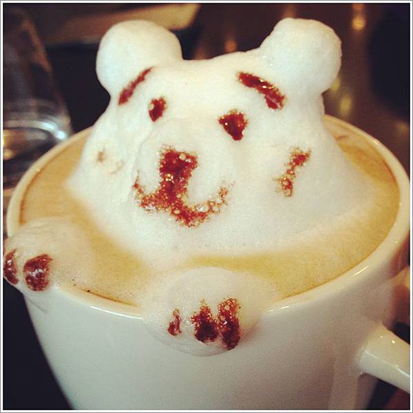 in%咖啡是我跟老公常去的店 每次來都會點熊熊咖啡 這隻畫的熊有八字眉實在有夠可愛的!!