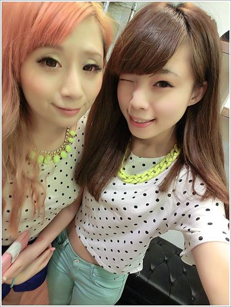 跟朱咩好巧都穿點點上衣和戴螢光項鏈 我們果然是好姐妹 真是太巧了!!