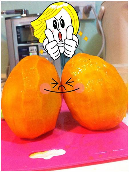 我跟老公比賽削芒果 結果我獲勝了 哈哈 我的是右邊喔