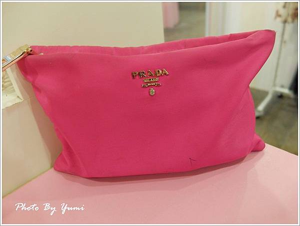 我們大家都很喜歡這個PRADA桃紅化妝包 果然也是粉色控 大家都愛粉紅色拉