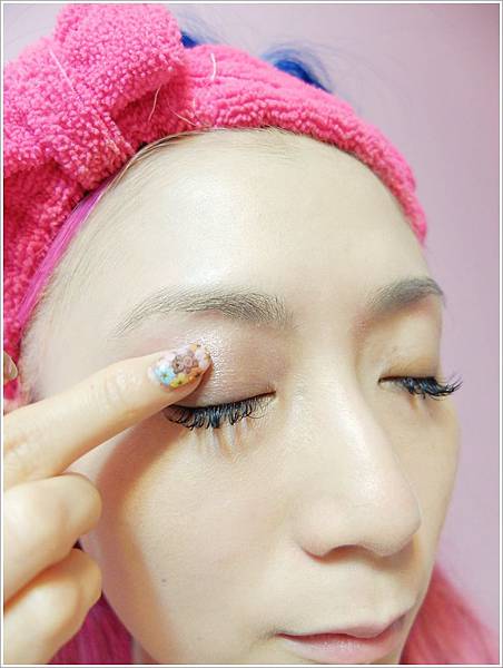 在眼窩塗上眼影蜜後用指腹輕推開就ok
