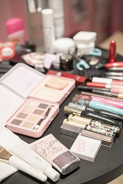 各大贊助品牌的彩妝保養品放在一起真是美麗 天呀~每一款彩妝都好想擁有