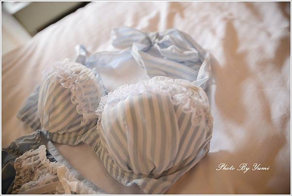 藍色條紋清爽舒適 緞帶與蕾絲完美搭配 讓內在美更美了
