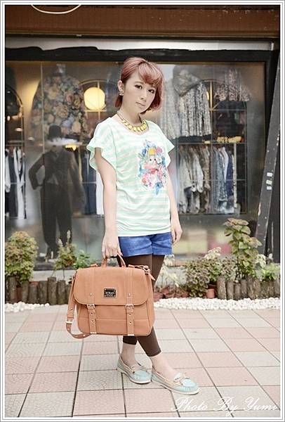 一起搭配I'miusa的花紋短褲 這件花紋還滿特別的