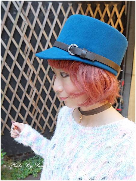 好喜歡這樣的藍色帽子 顏色非常特別 搭配我的髮型超好看的耶!!