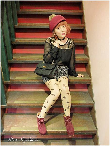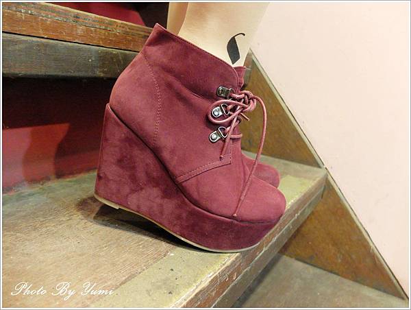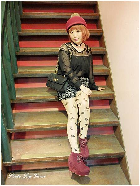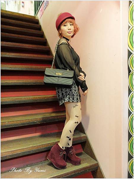 想說今天都穿全身黑了 鞋子可以搭配一下酒紅色 讓全身看起來比較不會這麼沉重