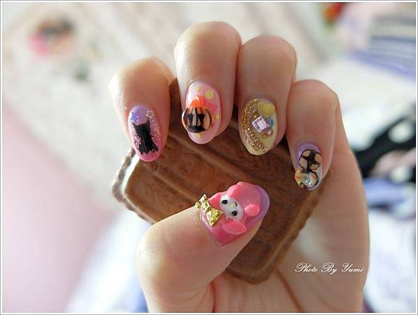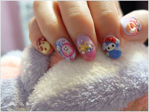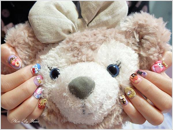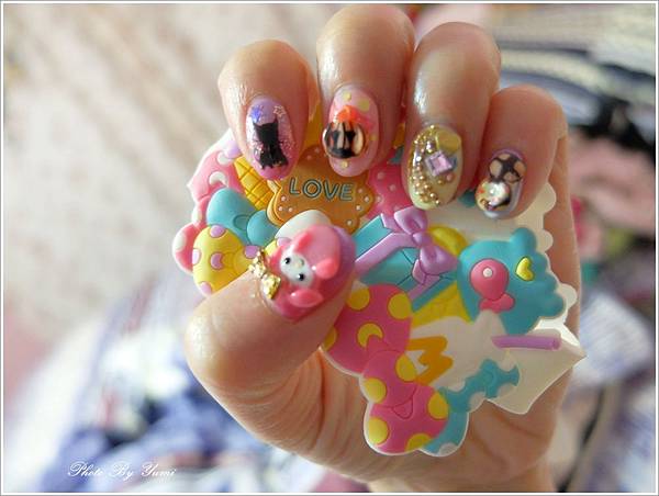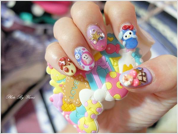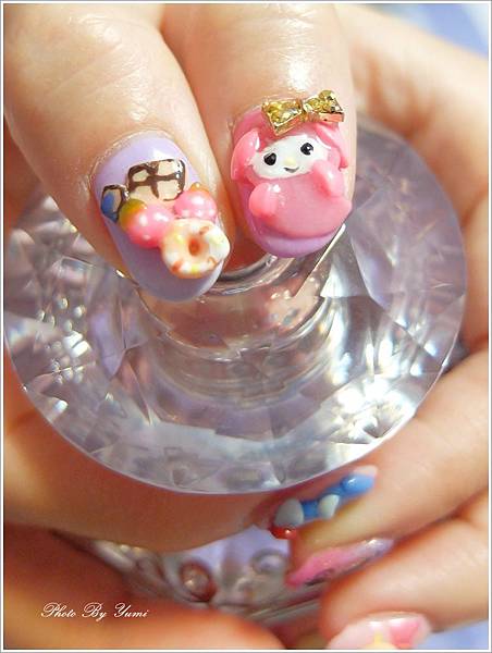 兩手大拇指一個是melody另一個是餅乾糖果粉雕 超立體粉雕感覺都快跑出來見人了XDD