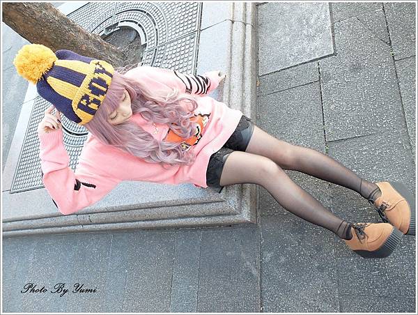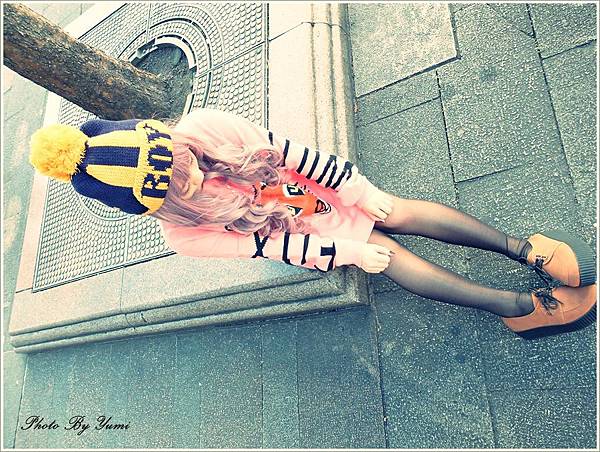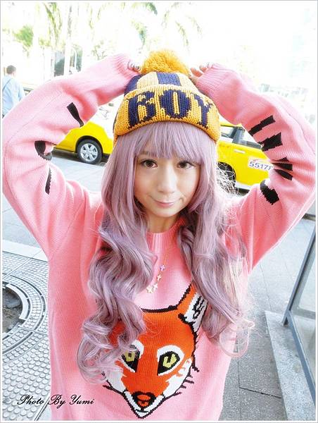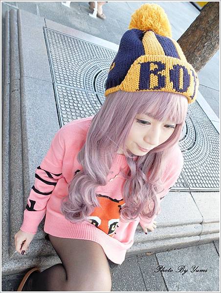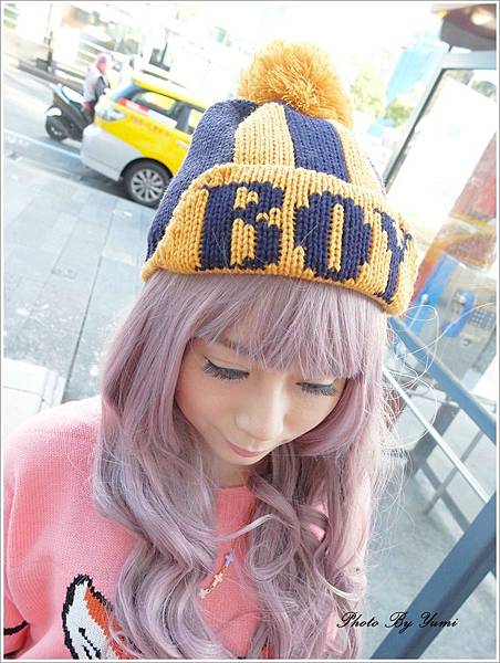 有點個性又可愛的毛帽 怎麼搭都好看 如果穿男孩風的衣服也很適合喔