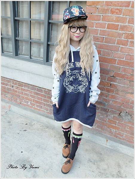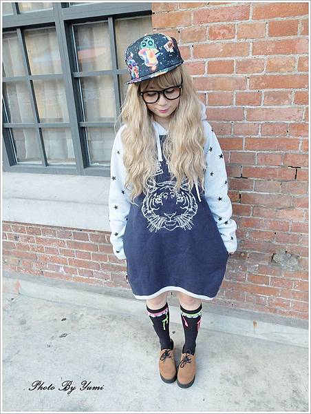 帶上俏皮的彩色哭摟帽和黑框眼鏡非常男孩的感覺
