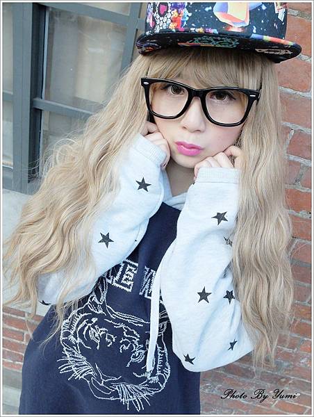 帶上網帽或是星星帽T都很可愛 金色捲髮實在是太可愛了 整體很耀眼喔~