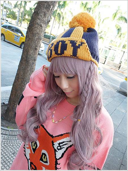 這頂特別的地方是有小辮子 原本就已經有的 不是我綁的拉XD