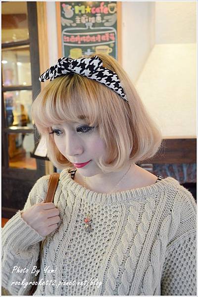 雖然身上穿的衣服儉約 戴上髮箍讓整體更活潑的感覺