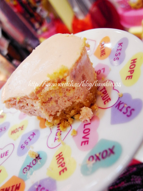 草莓起司蛋糕吃起來酸酸甜甜的 味道剛剛好 好吃唷!!