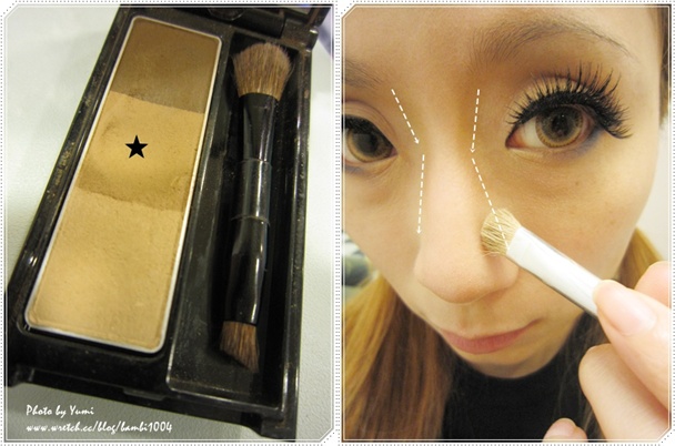 中間色由眉頭延伸畫鼻翼修飾鼻型